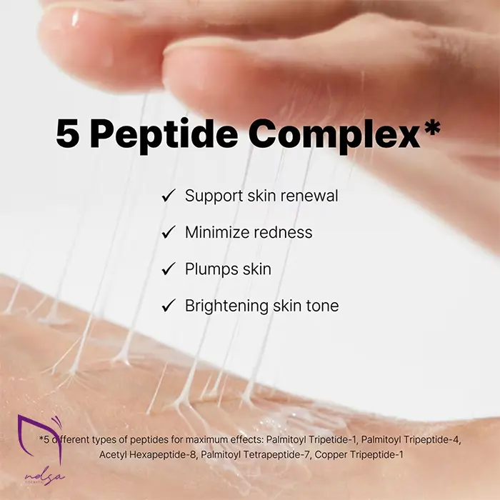 - پپتیدها (Copper Tripeptide‑1، Palmitoyl Pentapeptide-4 و دیگر پپتیدها): افزایش الاستیسیته و کاهش چینوچروک