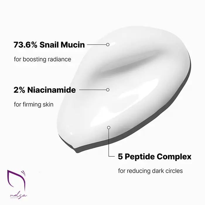 - Snail Secretion Filtrate (ترشّح حلزون): مرطوبکننده قوی و ترمیمکننده پوست