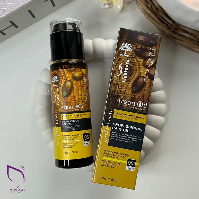 روغن آرگان لایتنس حاوی 95 درصد روغن آرگان طبیعی در ترکیبات خود است. که باعث نرمی و لطافت بافت مو شده و ساقه مو را تقویت می کند.