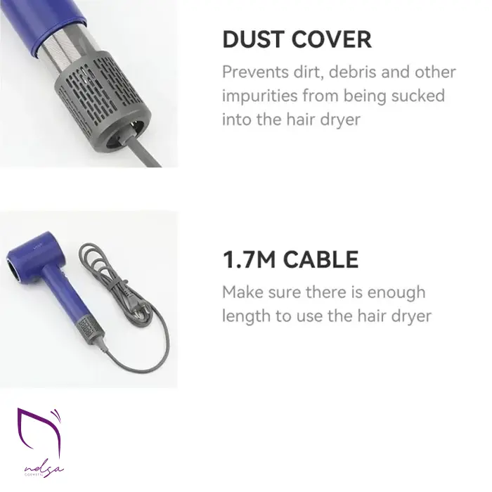- موتور BLDC با سرعت بالا (110,000 RPM) برای خشککردن سریع و مؤثر مو