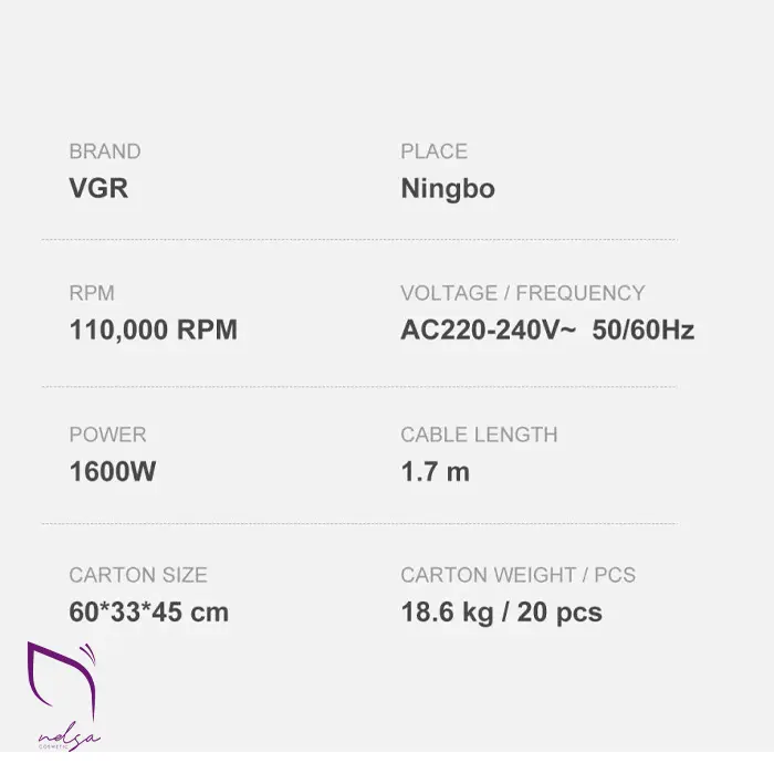 سشوار وی جی آر 445 با طراحی ارگونومیک و وزن متعادل ساخته شده که در استفادههای طولانیمدت دست را خسته نمیکند. طول کابل مناسب (~1.7 متر) با قابلیت چرخش، آزادی حرکت بیشتری در زمان استفاده ایجاد میکند.