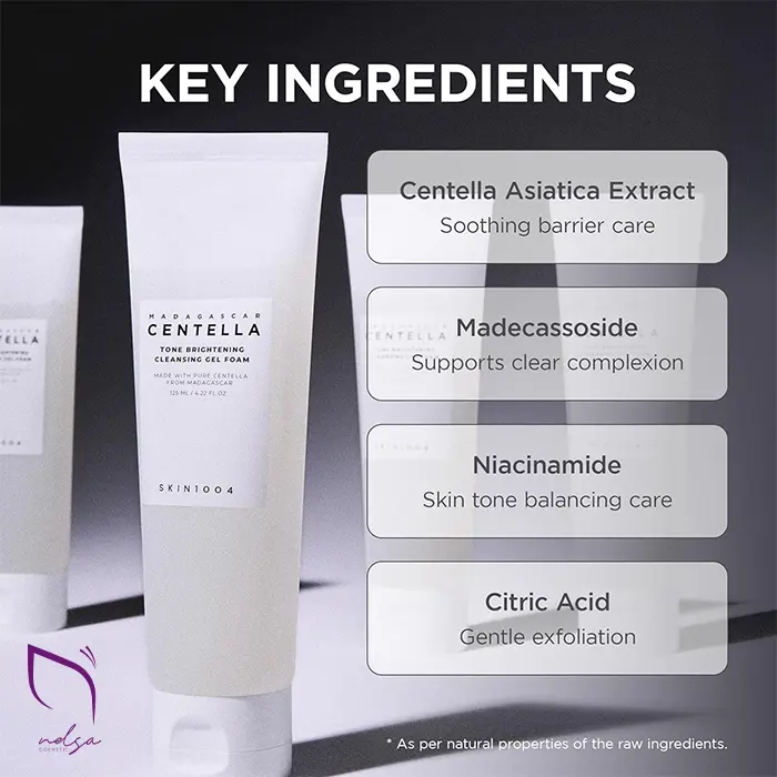 در فرمولاسیون این محصول از عصاره سنتلا آسیاتیکا ماداگاسکار استفاده شده که به خاصیت تسکیندهندگی و تقویت سد دفاعی پوست شناخته میشود. وجود نیاسینامید به بهبود شفافیت و یکنواختی رنگ پوست کمک میکند. همچنین ترکیبات آبرسان ملایم در این فوم باعث میشوند پوست پس از شستشو خشک و بیروح نشود. این محصول فاقد رایحه تند و ترکیبات تحریککننده رایج است و همین موضوع آن را برای پوستهای حساس ایمنتر میکند.