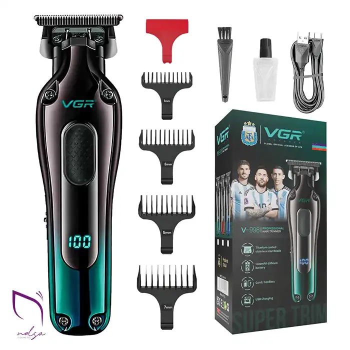 ماشین اصلاح مو و صورت وی جی آر مدل VGR V-998 یکی از مدلهای حرفهای و خوشساخت برند VGR است که برای اصلاح مو، ریش و مرتبسازی صورت طراحی شده است. این دستگاه با توجه به کیفیت ساخت، طراحی ارگونومیک و عملکرد پایدار، گزینهای مناسب برای استفاده شخصی در منزل و حتی برای افرادی است که به اصلاح دقیق و منظم اهمیت میدهند. VGR V-998 به گونهای ساخته شده که هم در اصلاحهای کوتاه و هم در مرتبسازی موهای صورت، نتیجهای یکنواخت و تمیز ارائه دهد.