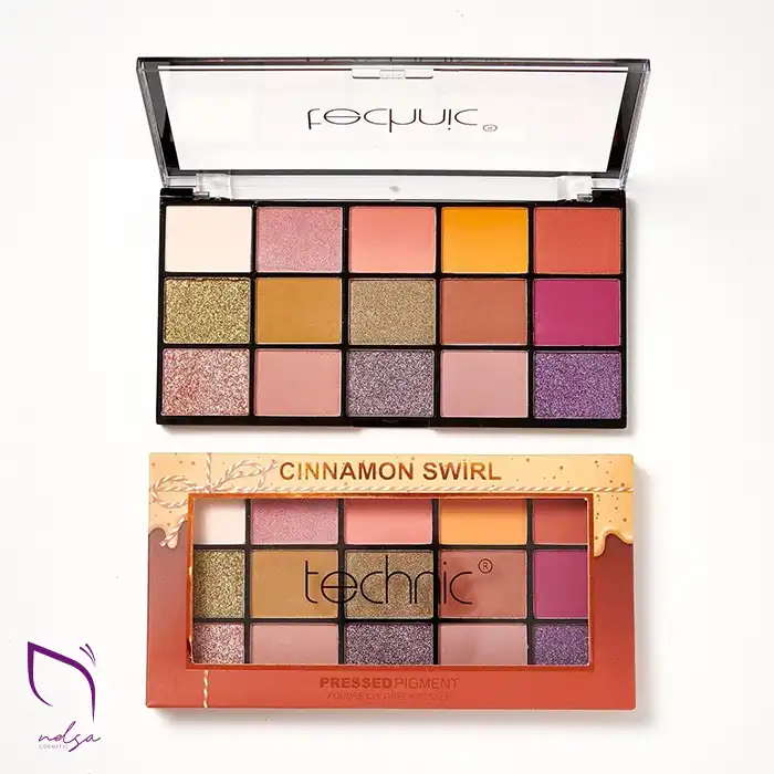 پالت سایه چشم تکنیک، ترکیبی از سایههای همه کاره برای انجام دادن هر نوع میکاپی است. رنگدانههای فشرده این سایه روی پوست ظاهری بی نقص دارند. پلت سایه، دارای 9 رنگ مات و 6 رنگ براق و شاین است. بافت کرمی این سایه ماندگاری بالایی داشته و ظاهری خیره کننده به چشمها میدهد. پالت سایه چشم تکنیک مدل CINNAMON SWIRL ، شامل رنگهای نود، پرتقالی، صورتی، سبز، بنفش، خاکستری، سرخابی، حنایی و بسیاری دیگر از رنگهای جذاب است.
