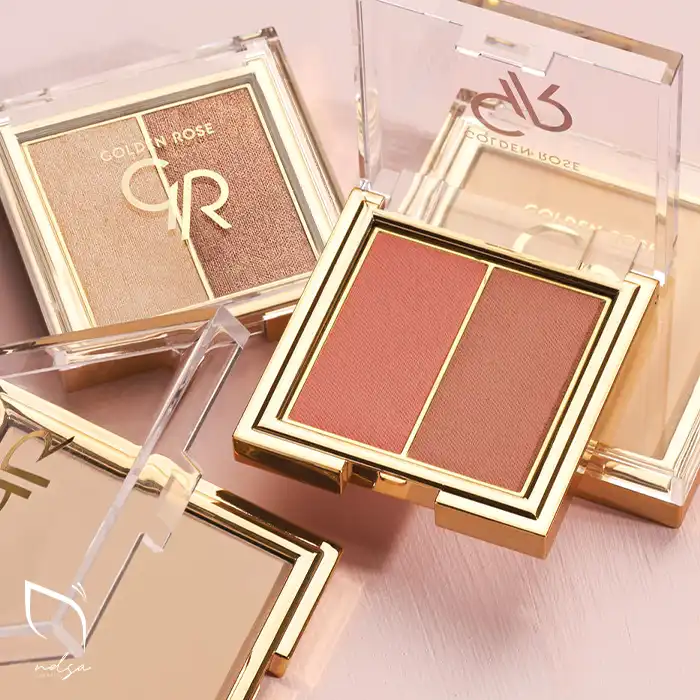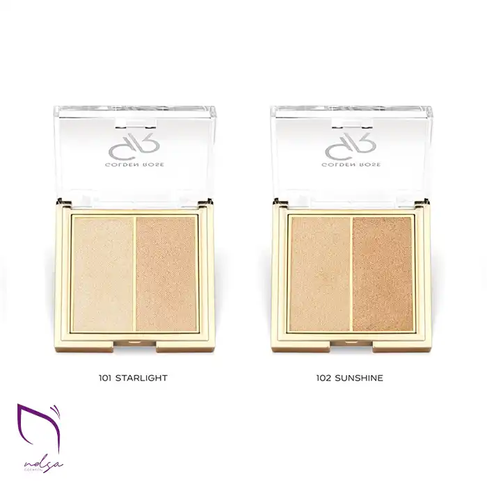 پالت هایلایتر 2تایی گلدن رز با افزایش درخشش پوست حالت بی روح را از پوست گرفته و سبب میشود پوست شما خیلی جوان و بشاش بنظر برسد. همچنین هایلایتر پودری گلدن رز نواحی را که مدنظرتان است برجسته کرده و خاصیت لیفت کردن برای ساختار استخوانی صورت دارد.