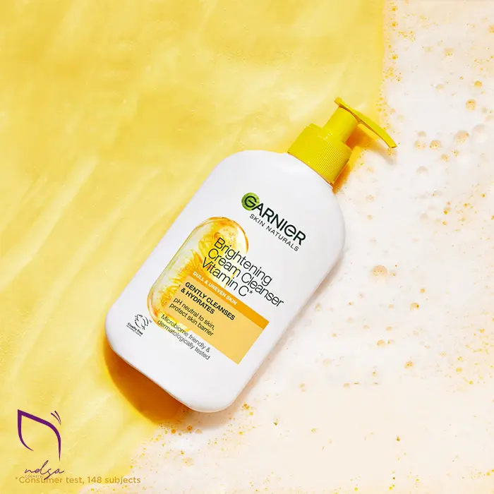 ژل شستشو ویتامین C گارنیر یک پاککننده و روشنکننده با فرمول کرمی-ژلی است که برای روزانه شستن صورت طراحی شده است؛ Garnier Vitamin C Brightening Cleanser و پاککننده و روشنکننده گارنیر با هدف حذف آلودگی، آرایش سبک و کنترل تیرگی ظاهری پوست عرضه شده است. این شوینده حاوی مرطوبکنندههایی مثل گلیسرین و عوامل کفکننده ملایم است تا پوست را خشک نکند و در کنار خواص روشنکنندگی، احساس نرمی و تازگی پس از شستشو باقی بگذارد.